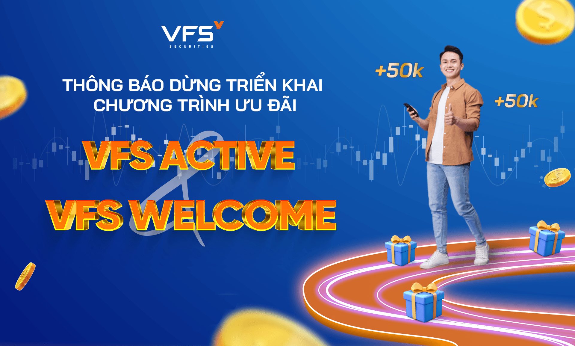 Theo đó, kể từ ngày 01/04/2026, VFS sẽ dừng triển khai chương trình ưu đãi VFS Welcome và VFS Active thuộc bộ sản phẩm VFS Invest. Thông tin cụ thể như sau: